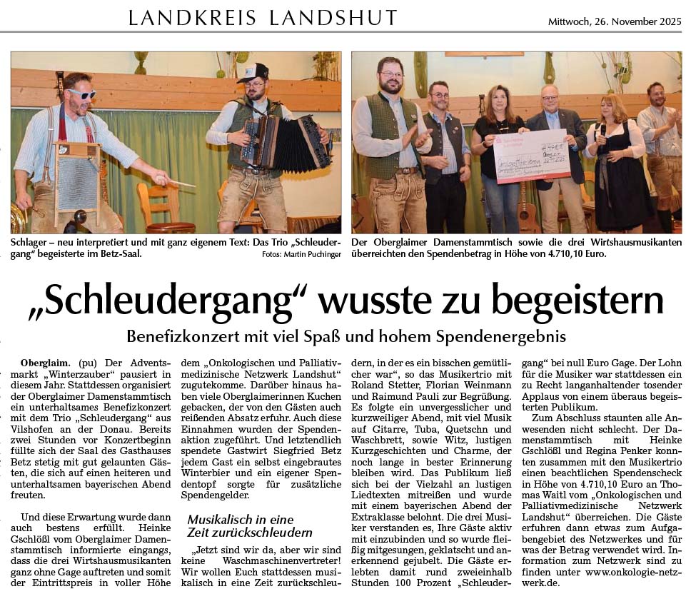 Spenden zugunsten des Onkologie Hilfe Vereins Landshut werden gerne entgegengenommen.